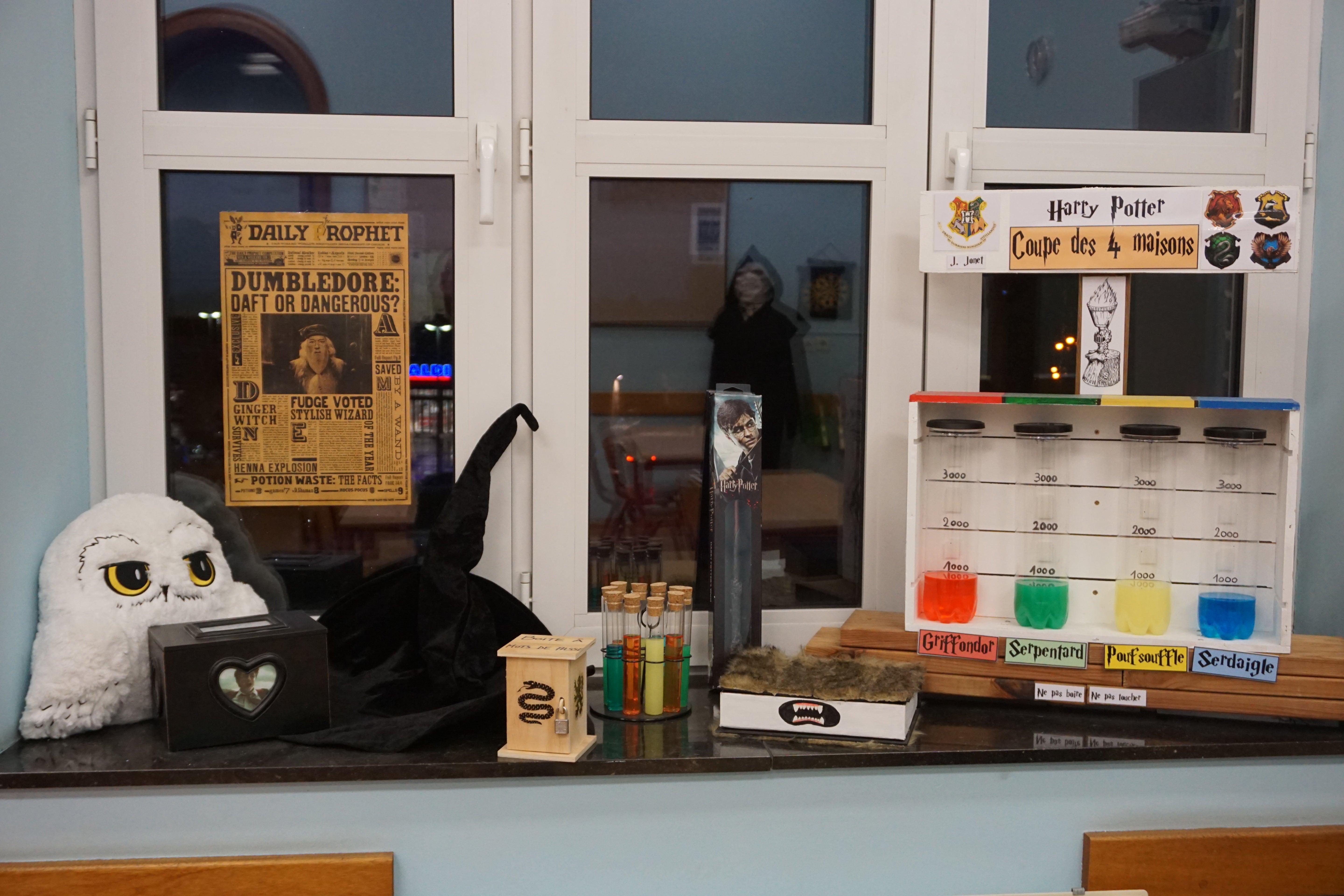 Comme je l'explique à mes élèves dont je suis titulaire en première secondaire, la magie de la classe est comme un fond d'écran. On fera référence à ce côté magique tout au long de l'année mais les cours, y compris ceux des autres professeurs priment. Une bonne participation, une bonne étude, un bon comportement rapporteront des points tandis que des oublis ou un mauvais comportement en feront perdre. L'ambiance d'une "compétition" saine est primordial et j'insiste beaucoup sur ce point en début d'année. Pour la 8e année consécutive, les maisons Gryffondor, Serpentard, Poufsouffle et Serdaigle s'affronteront pour remporter la Coupe des 4 maisons.